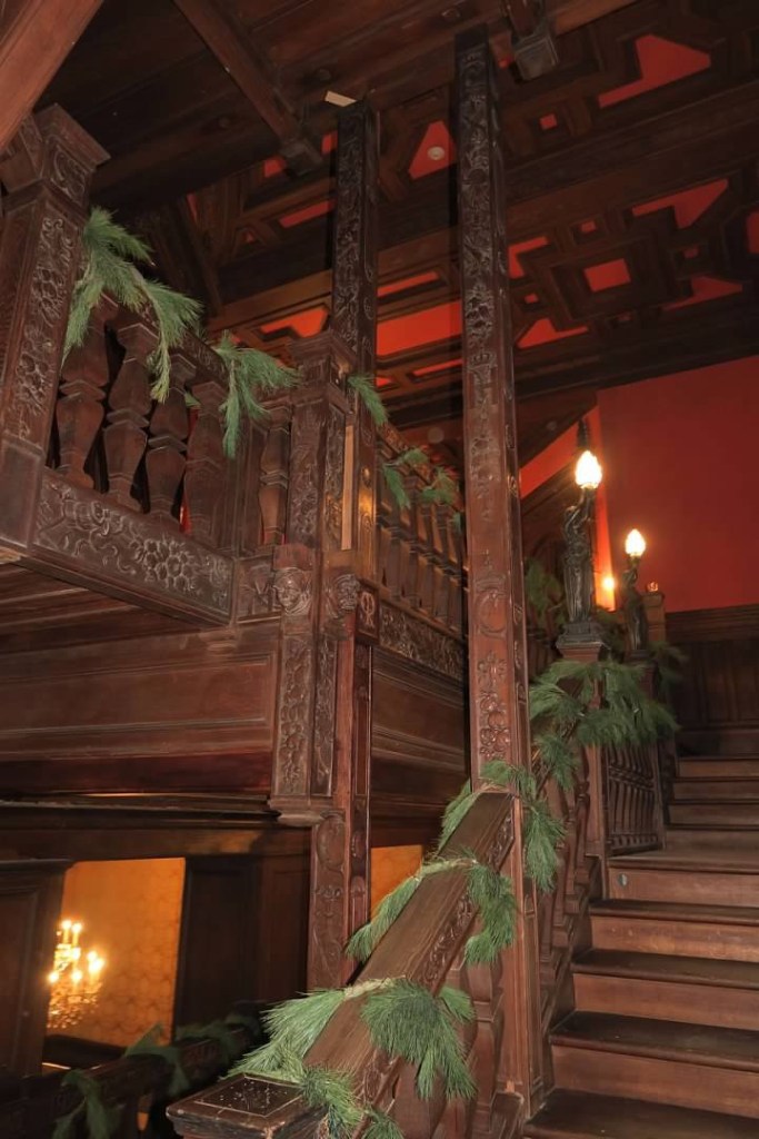One of the most elaborate areas in the mansion is the grand staircase, with stunning details and incredible craftsmanship.
