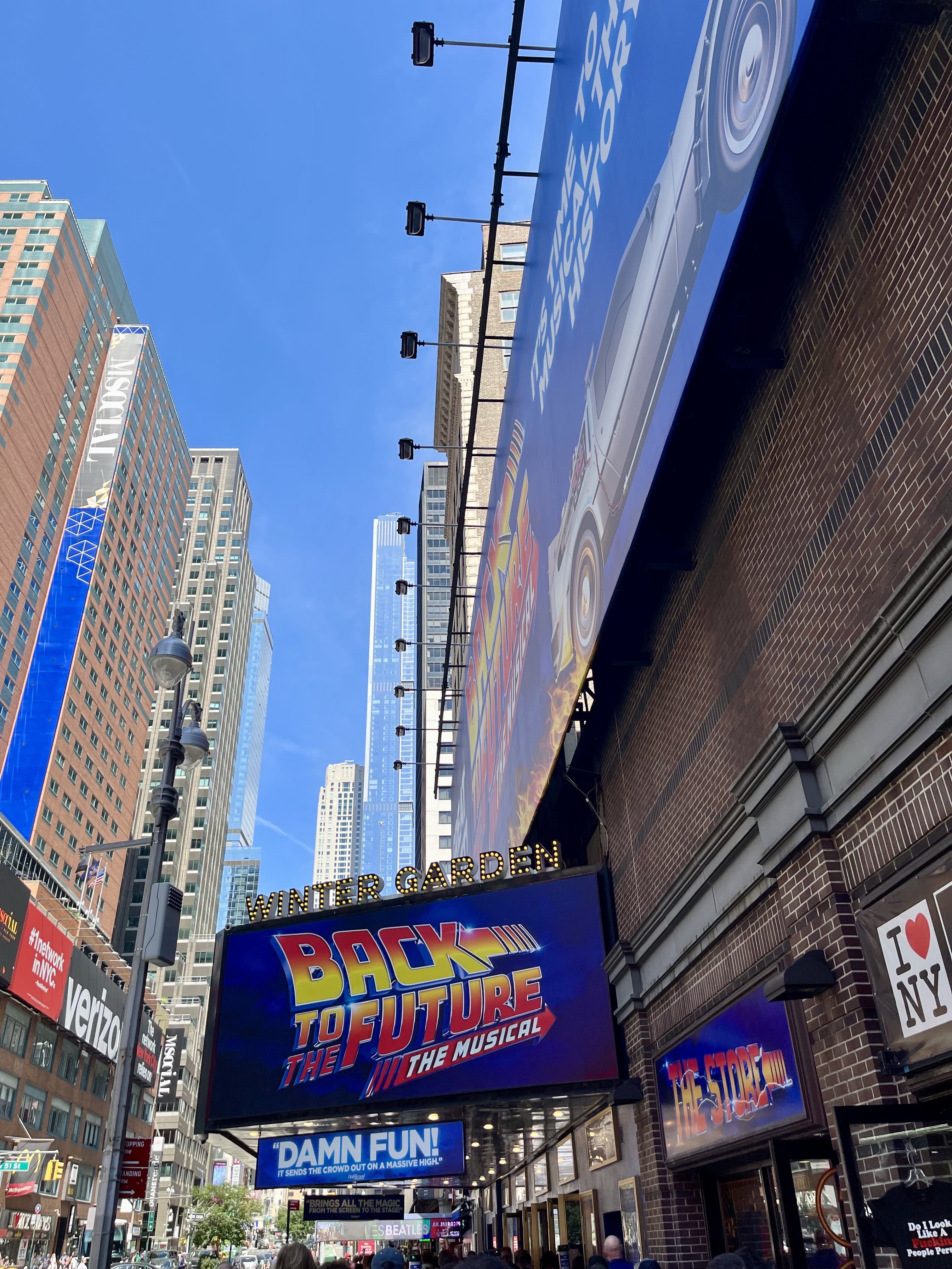 The show was fabulous in many ways, but its epic special effects truly stood out! So many details make this show impressively high-tech, from the floor-to-ceiling lighting that created a ticking time machine image around the front half of the theatre, to the illusion of Doc climbing the clock tower. But nothing beats the grand finale where Doc and Marty actually fly above the audience in the DeLorean (yes, you read that right!) I have never seen such a reaction from a Broadway audience as I did when a car was floating above our heads!