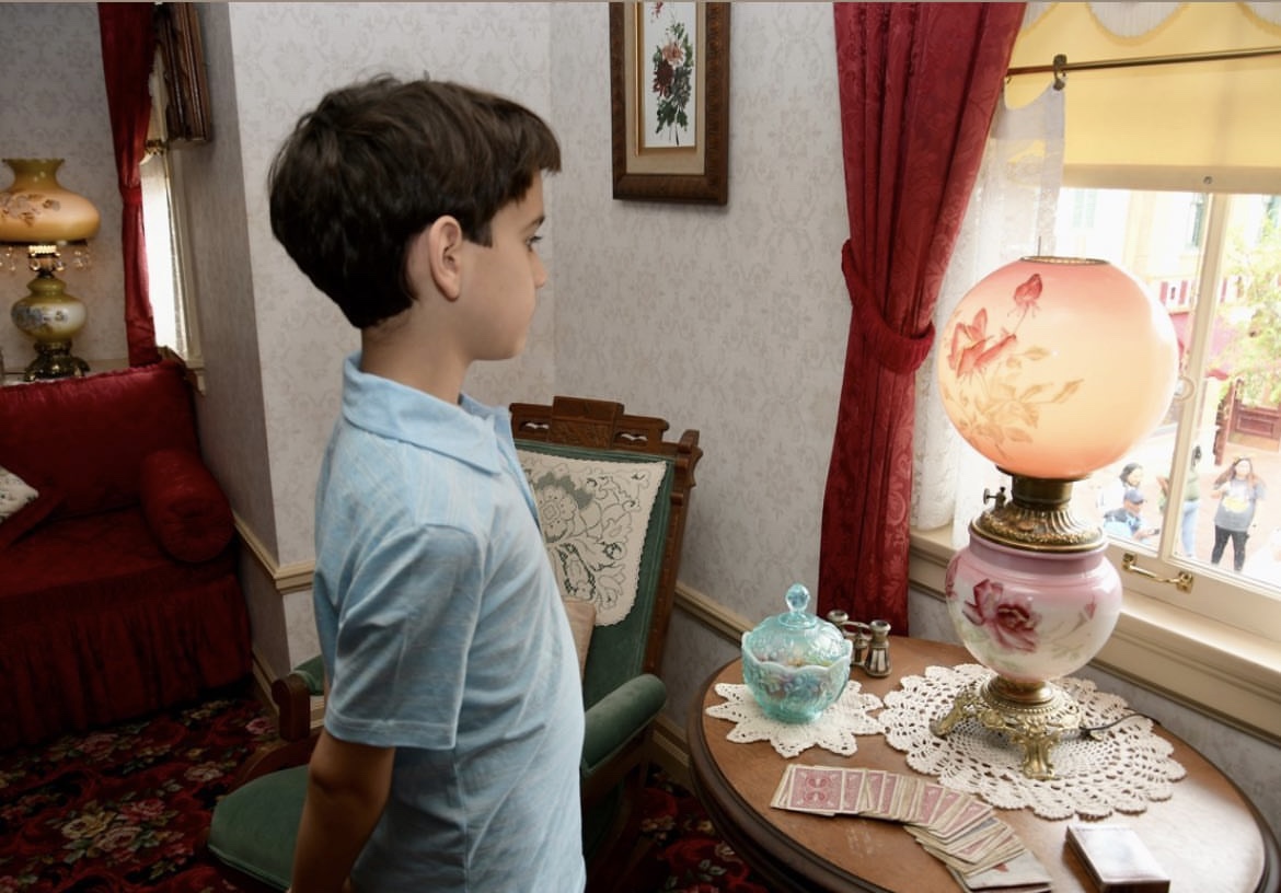 We weren’t allowed to take personal photographs inside Walt’s apartment, so you won’t see any here. But part of our tour ticket included a few professional photos taken of each family by a Disney PhotoPass photographer. This photo of my son looking out the very window that Walt used to look out is such a special keepsake from this memorable experience!