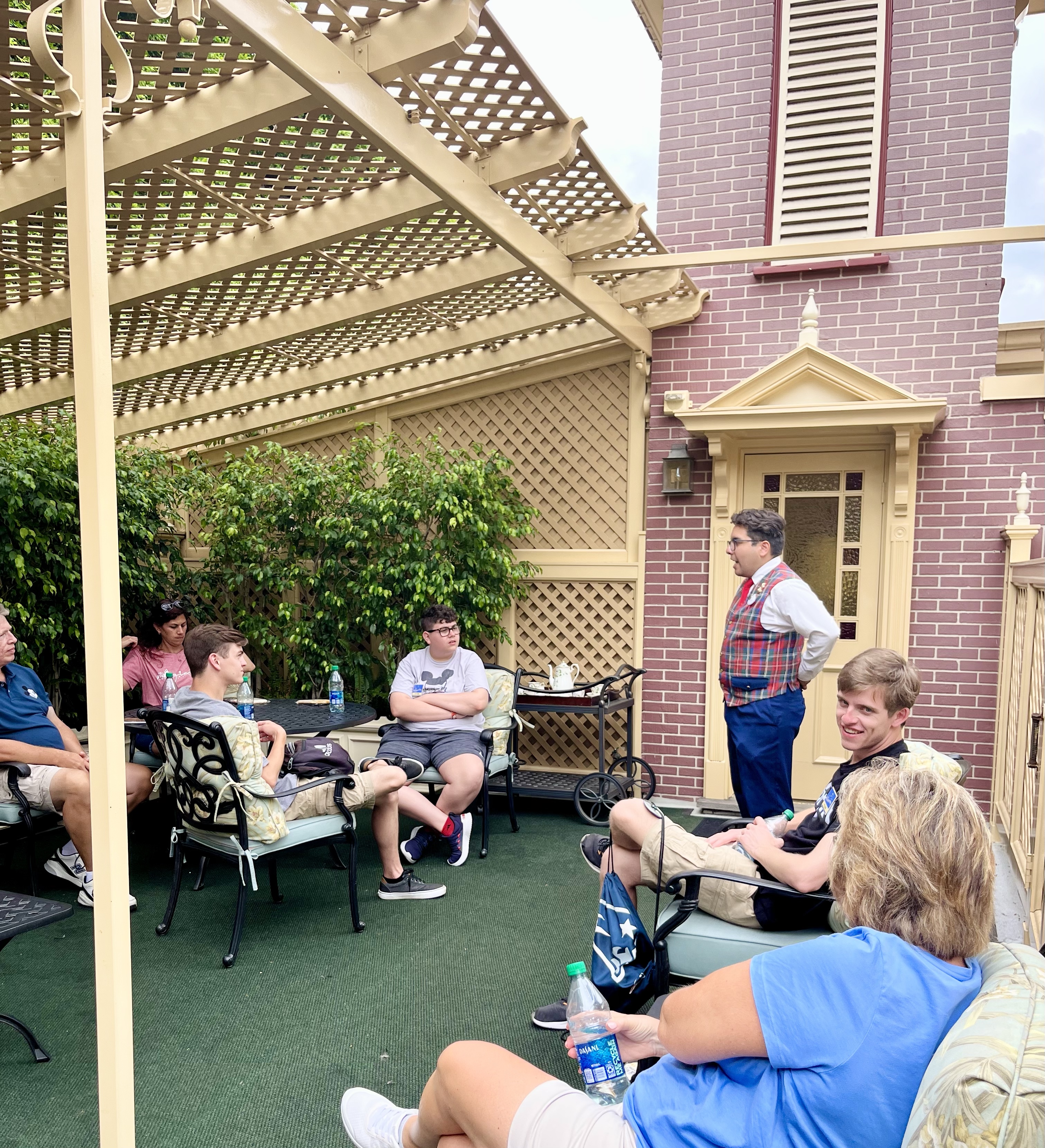 At the conclusion of our tour, we stepped outside of Walt’s apartment onto his private veranda where we got to see his view of Main Street. James invited us to have a seat and enjoy some complimentary water and personalized cookies, which were enormous and tasted like a yummy, lemony shortbread with edible gold stars! He answered all of our questions and shared more personal stories of his experience as a Disney history expert. It was the perfect ending to a perfect morning. I would’ve moved right into Walt’s veranda if they let me!