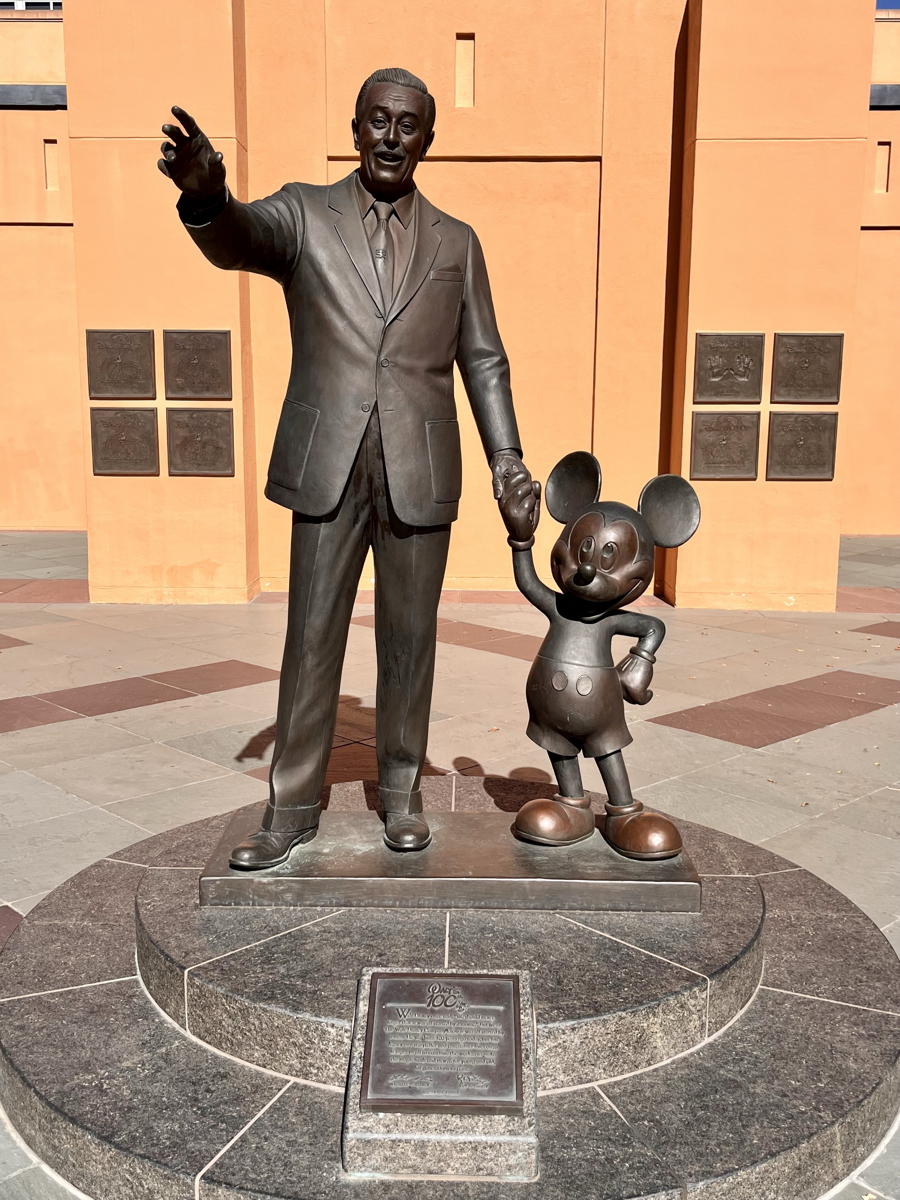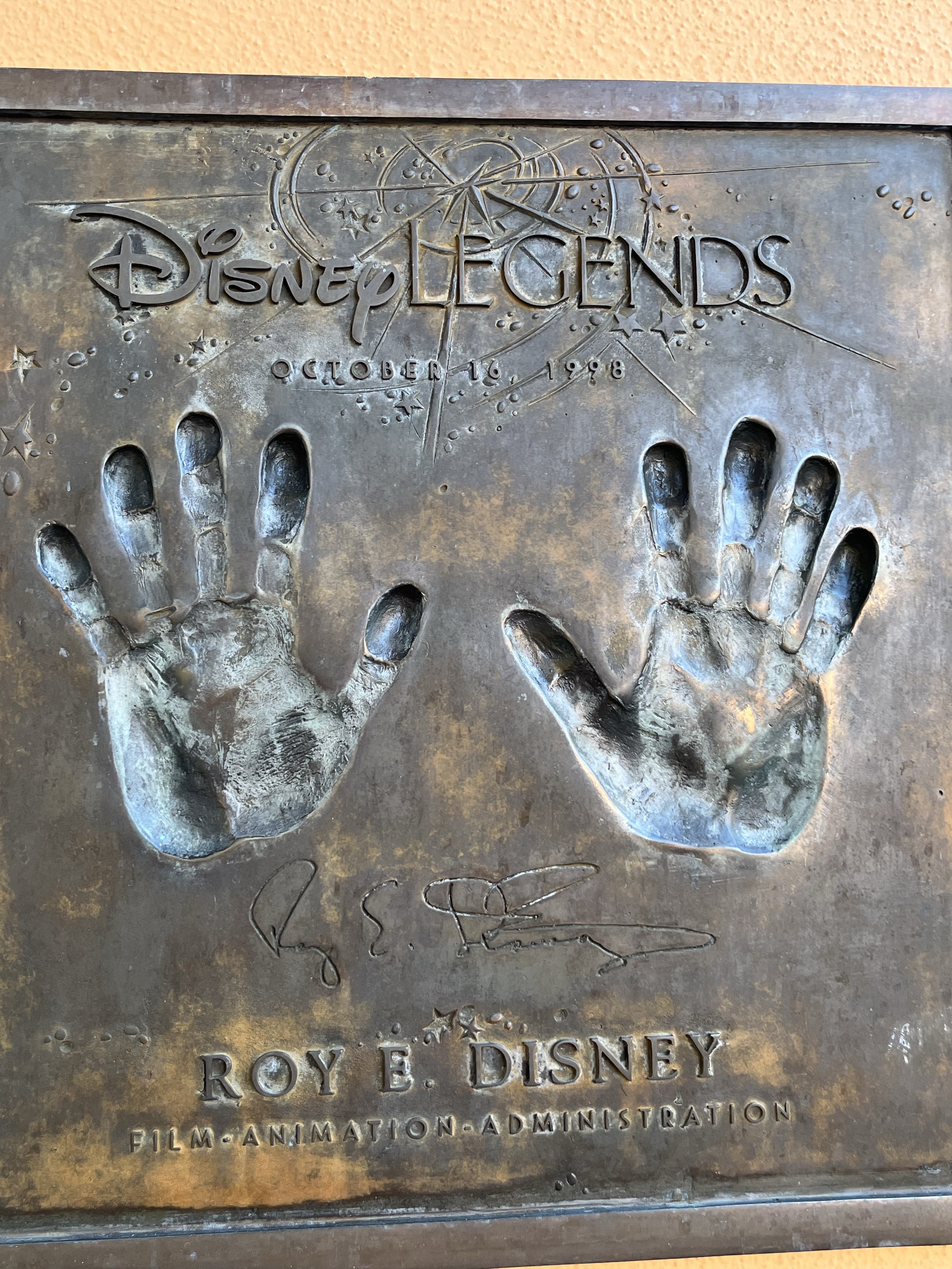 The area also has its answer to the Hollywood Walk of Fame, with handprints of Disney legends hung along the pillar walls. What a treat to put our hands in the molds of so many talented folks, past and present, who helped create the magic of Disney movies.