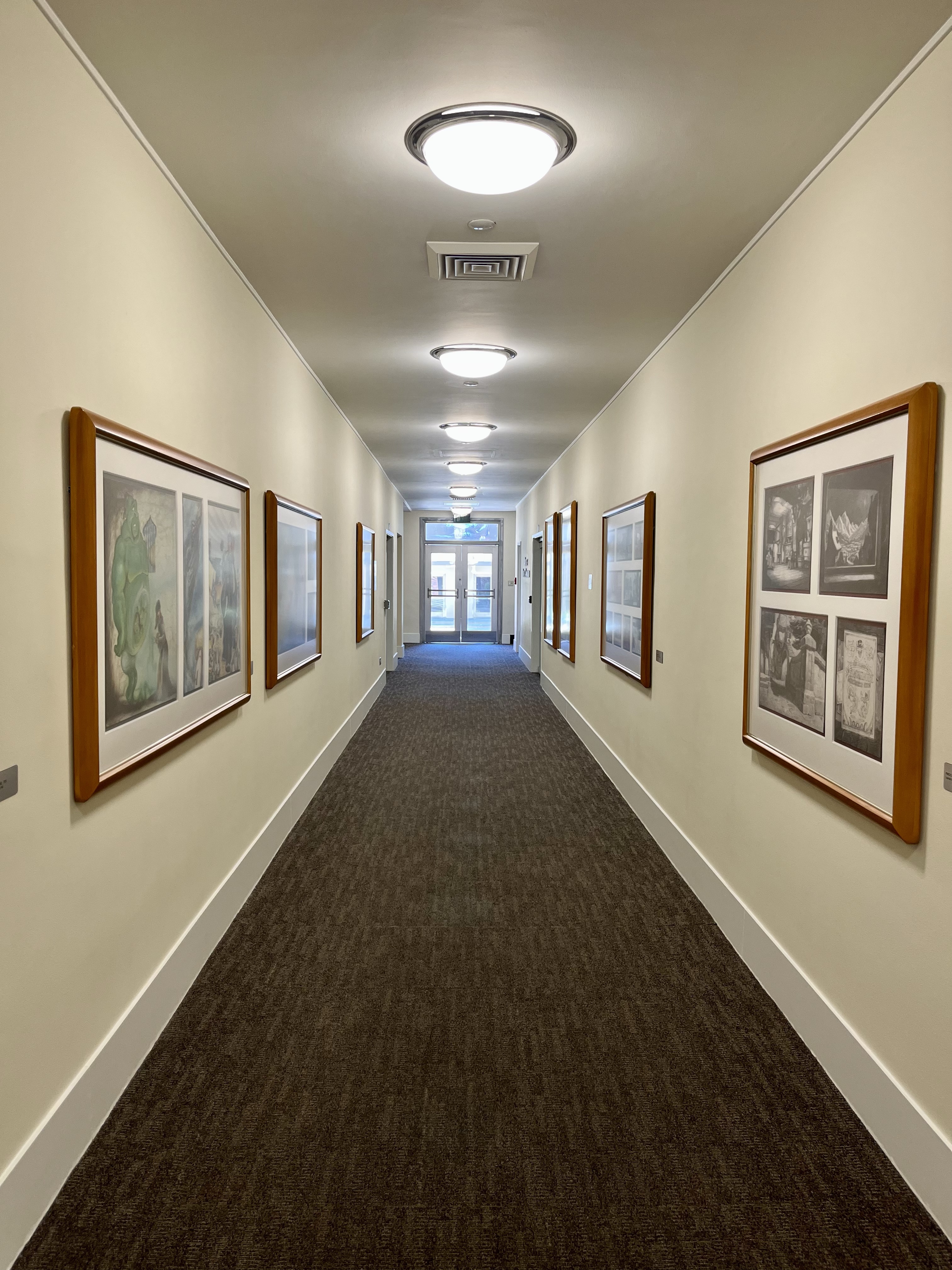 We walked down the building’s long halls that are lined with original drawings from 100 years of Disney animation.