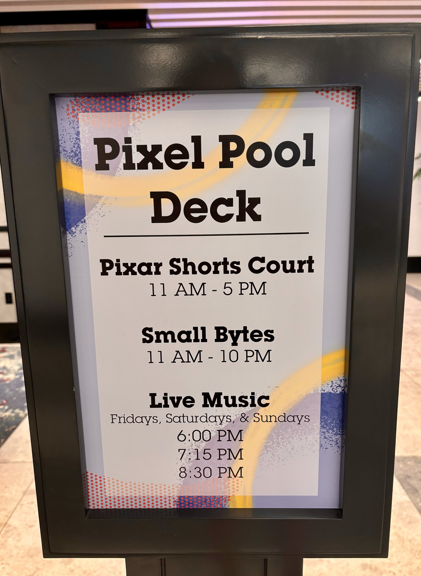A few feet away in the same area of the lobby is The Sketch Pad Cafe, a quick-service, grab-n-go style coffee shop. It could use a little more variety, but my favorite thing about it is the open, spacious seating area, which we even made use of one late night while eating takeout from the pool. That brings us to the hotel’s last eatery, Small Bytes, on the rooftop. The cast members there are really nice, and it’s super convenient having a pool bar right on the rooftop. But the menu sounded better than it tasted, and it was quite overpriced.