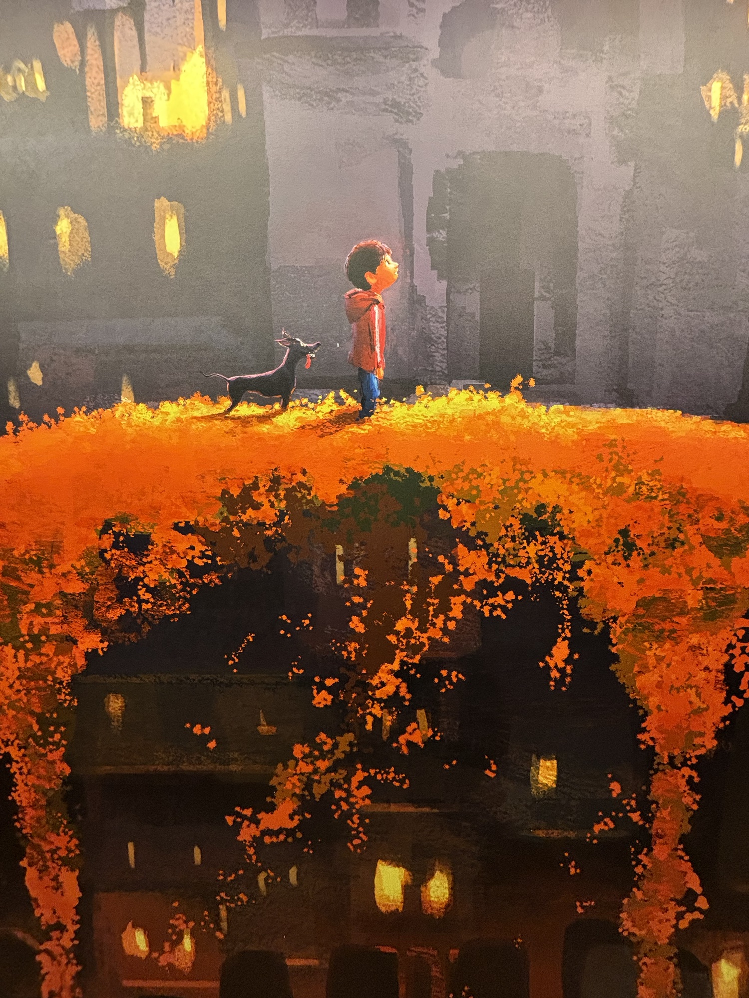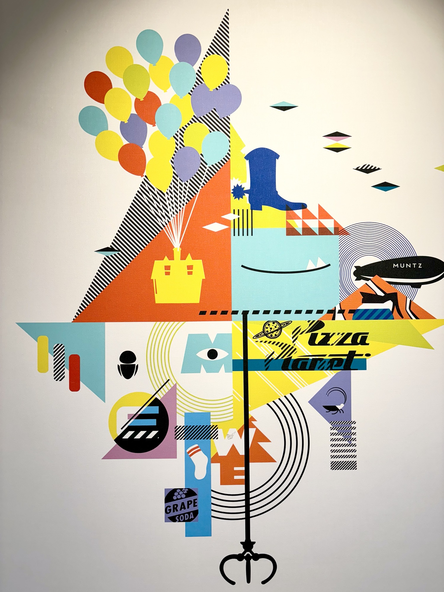 There’s art everywhere you turn, and I love how BIG it all is! Giant, lit-up murals pulled me in and made me as emotional as a Pixar film does. The artwork and sculptures throughout the hotel (including murals in the rooms) were created especially for the hotel by Pixar Animation artists. I enjoyed seeing how all the work boasted the unique style of different artists.