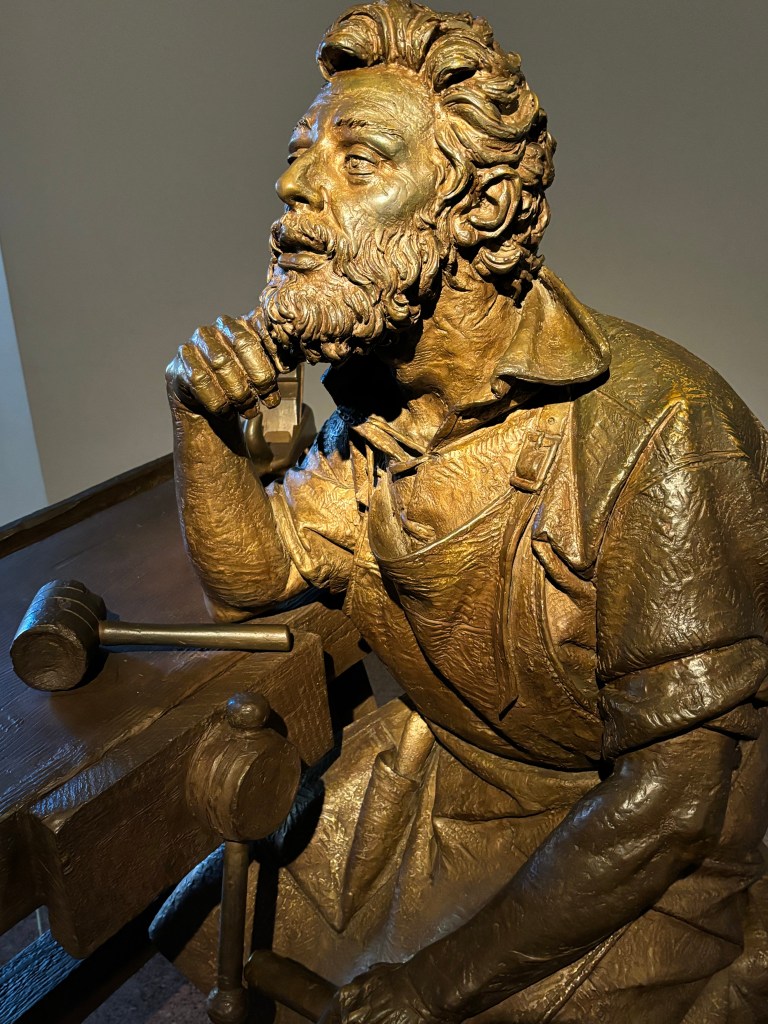 I was struck by the lifelike features on these sculptures that drew me in to feel them. Bruno Lucchesi, the artist who created the sculptures, purposely made them at eye level to encourage accessibility because he said, “To touch is to pray.”