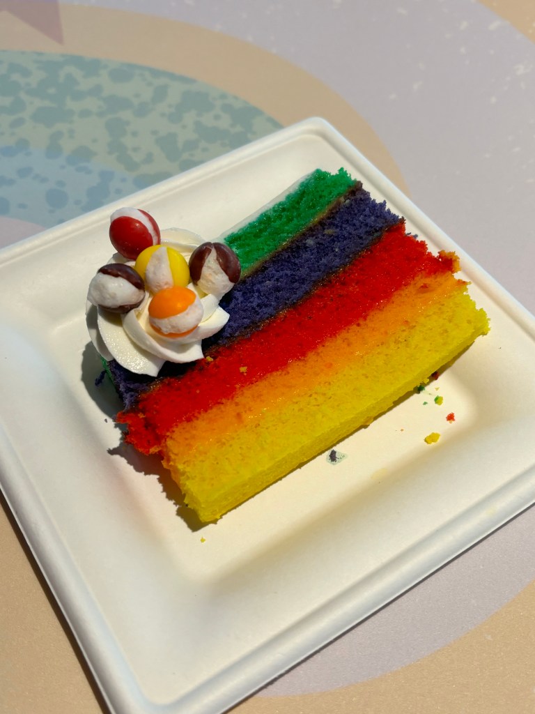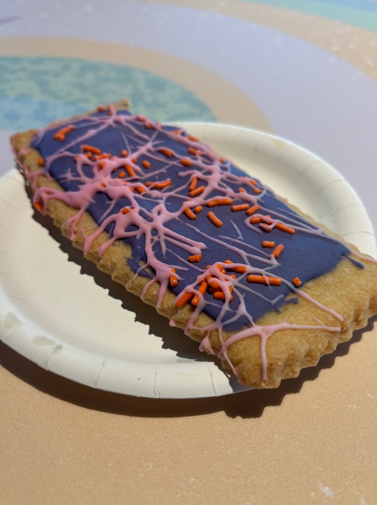 My son and I both agreed that the classic rainbow Skittles cake and the elevated pop-tart were basic but tasty. And their Festival chocolate chip artist’s palette cookie (complete with icing “paint” and a real paintbrush) was delicious.