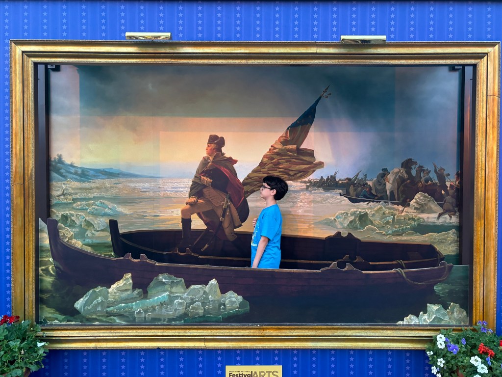 If you find all this artwork as inspiring as we do, you may wish you could just jump right into one of the paintings. And as Walt said, “It’s kind of fun to do the impossible,” so in a Disney Park, you can do just that! I had fun stepping inside a Renoir, while my son pretended to be one of General George’s men.