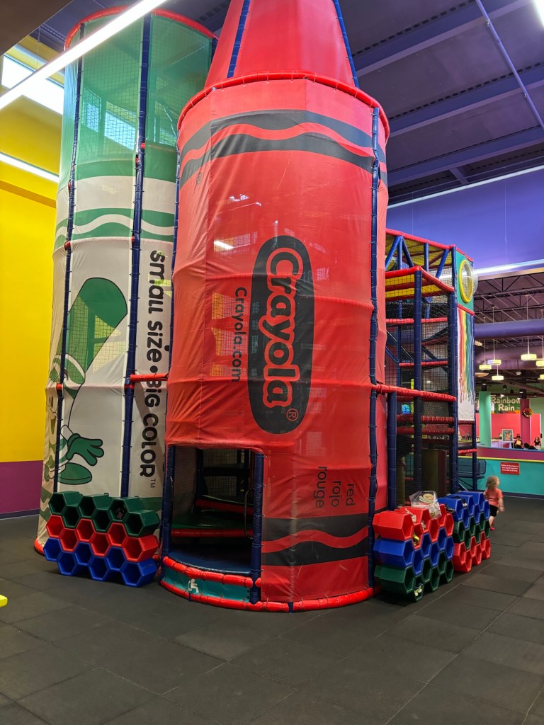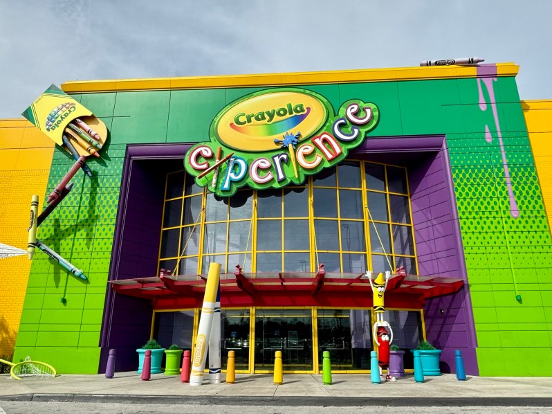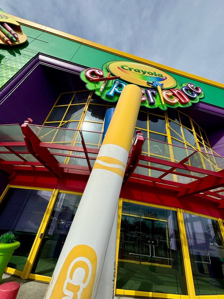 Crayola Experience Orlando is housed right inside The Florida Mall on Orange Blossom Trail. It was the perfect escape for my family on a recent chilly, rainy day we spent in Orlando. We left our Disney resort and took our rental car out for the under-20-minute drive to Crayola, so my son could flex his creative muscles and release some energy indoors. With 70,000 square feet of space, there’s plenty of room to create and play here! We knew the theming would be adorable as soon as we saw the colorful, playful characters from the parking lot!