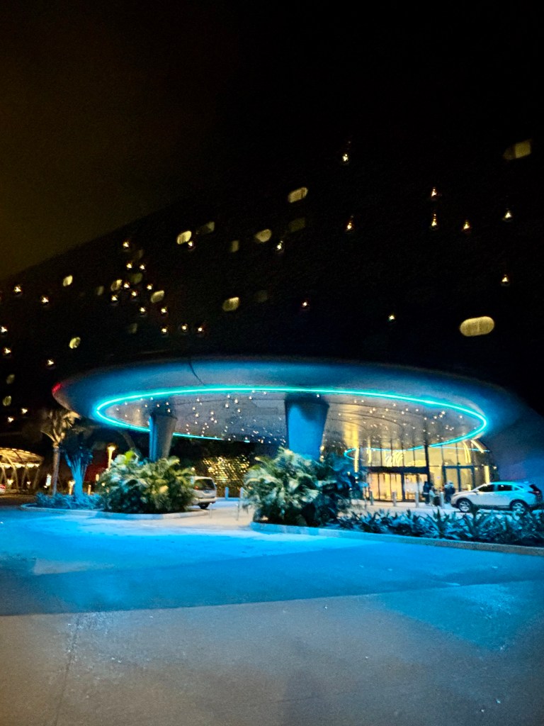 The outside of the hotel is made of spectacularly colorful panels, and looks very similar to its sister hotel, Universal Terra Luna, another moderate-level new resort. We liked the look and feel of Stella Nova better, but with so much in common and a comparable price point, the choice between these two brand new space-themed hotels is really a matter of personal preference.