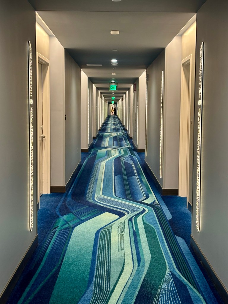 We stayed at Universal Stella Nova Resort, one of the two space-themed, mid-level hotel options on the new property. My son had seen videos and ads for this particular hotel and was so excited to immerse himself in its out-of-this-world theming. He was thrilled from the moment we arrived, and I loved seeing him run around the shiny new lobby smiling at every starry detail!