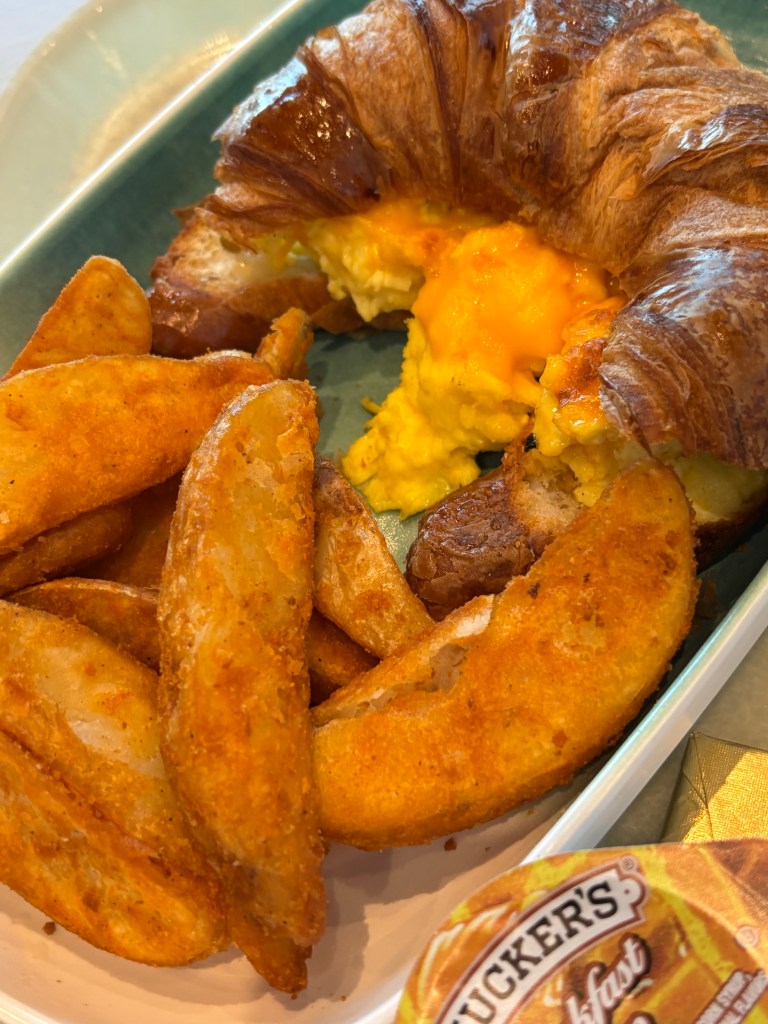 We were pleasantly surprised at how delicious the quick service restaurant in Stella Nova is. Cosmos Cafe offers three meals a day of family-friendly fare, but with a slightly elevated style compared to typical theme park food. (Get the breakfast potatoes — they were my favorite each morning!) The kids’ meals are also a good deal for the amount of food you get (I loved the kids’ mac and cheese!)
