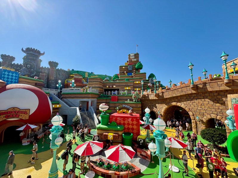One of the park’s five portals leads you into Super Nintendo World by way of a green pipe that makes realistic video game noises. I felt truly immersed in this land, and I think the big entrance had a lot to do with it! Once you’re through the portal, you’ll feel as though you’re in a totally different theme park than the sparkle and grandeur of Epic Universe.