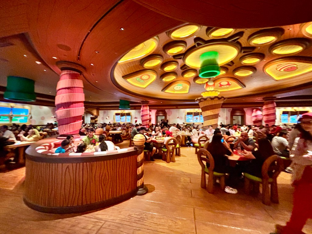 When we visited Hollywood’s Super Nintendo World, I found the lack of space, shade, and variety to be big downsides, and was super disappointed in the food as well. It seems that Universal learned from their past mistakes when building Epic. They were intentional in designing seating and shady spots, and even the food was a bit better than in Hollywood. We especially liked the calzone at Yoshi’s Snack Island.
