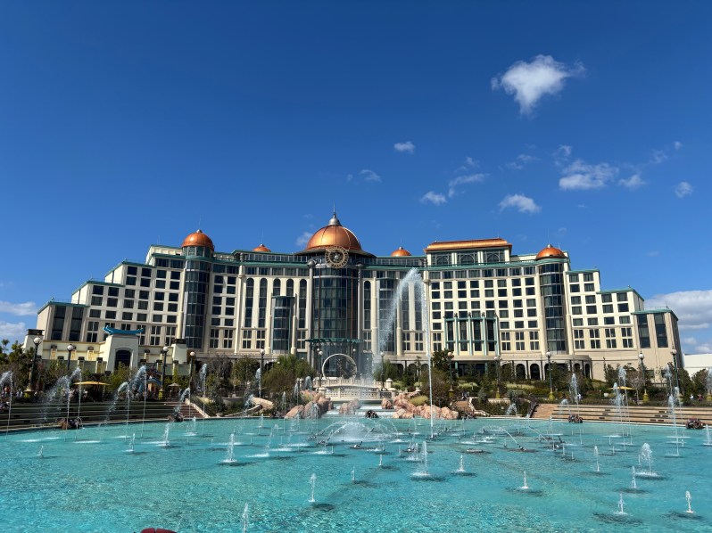 The grandeur of Helios Grand is mostly in its impressive exterior, visible from many areas of the theme park. With elegant colors, lavish sculptures, and shooting fountains, this hotel is epic in and of itself.