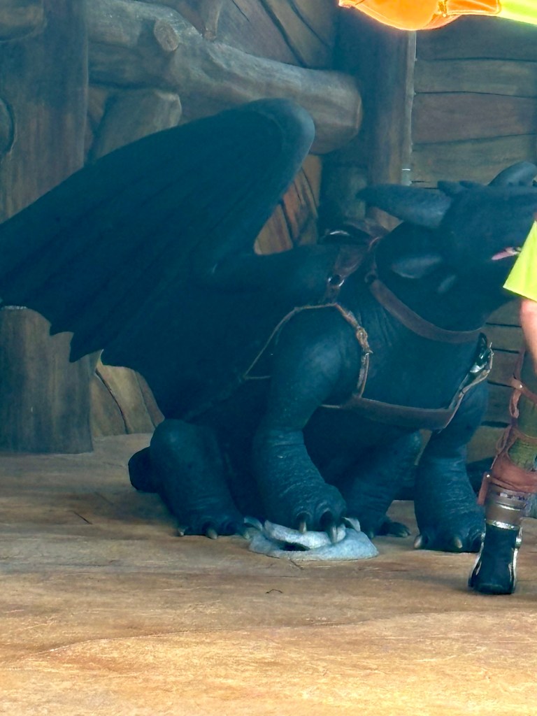 A big draw of this land is the very popular meet-and-greet with Toothless and Hiccup. With a wait time that is rarely below an hour, we gave up on this line since it was 90 minutes when we were there. If this is a must-do for you, go early in the day and be prepared to spend a big chuck of your time on line here. We later ate at Mead Hall, which was okay but nothing spectacular.