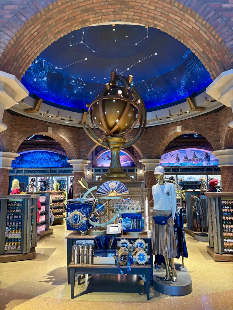 As mentioned earlier, I wasn’t visiting Epic specifically for roller coaster thrills or must-see favorite characters. I just love a shiny new theme park! And this one’s design did not disappoint. As soon as we walked in, I was instantly impressed by how beautifully everything was designed. Its over-the-top look does justice to the epic name, and the color scheme stood out for me — turquoise, gold, royal blues and purples that give the theme park a high-end, majestic feel. While some of the lands and rides are geared toward kids, overall it felt like Epic Universe has a more mature theme park vibe.